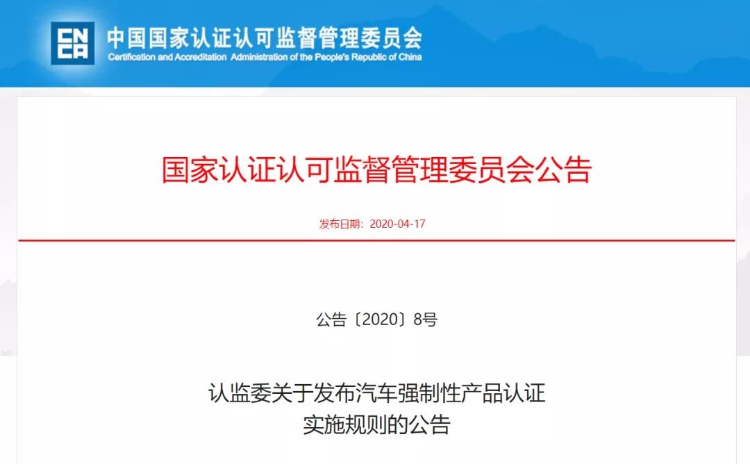 認(rèn)監(jiān)委關(guān)于發(fā)布汽車強(qiáng)制性產(chǎn)品