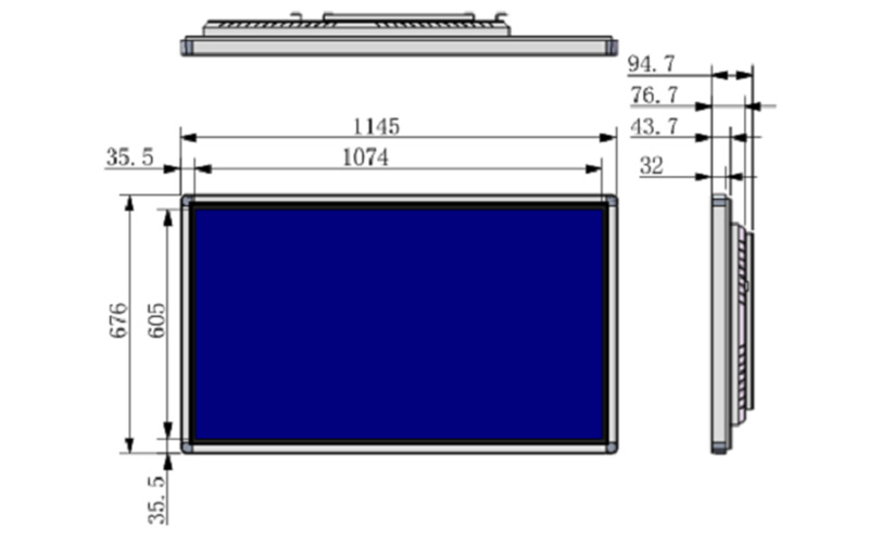 表面3MM鋼化玻璃,邊框鋁合金型材,后殼1.5MM鈑金。